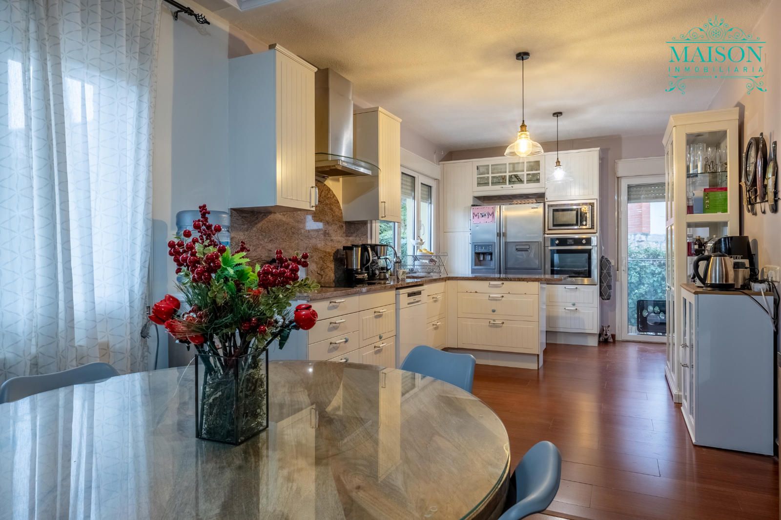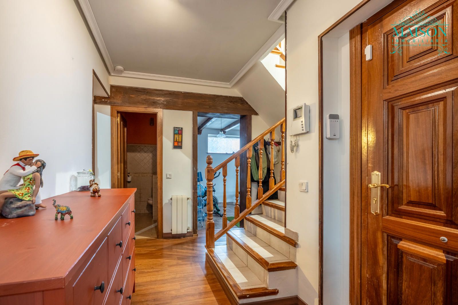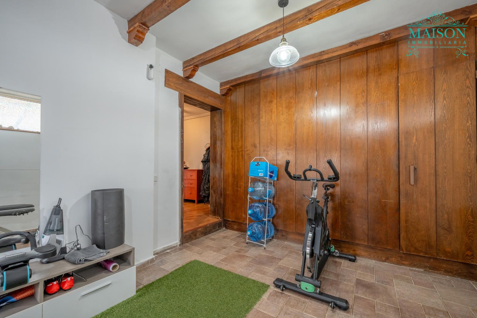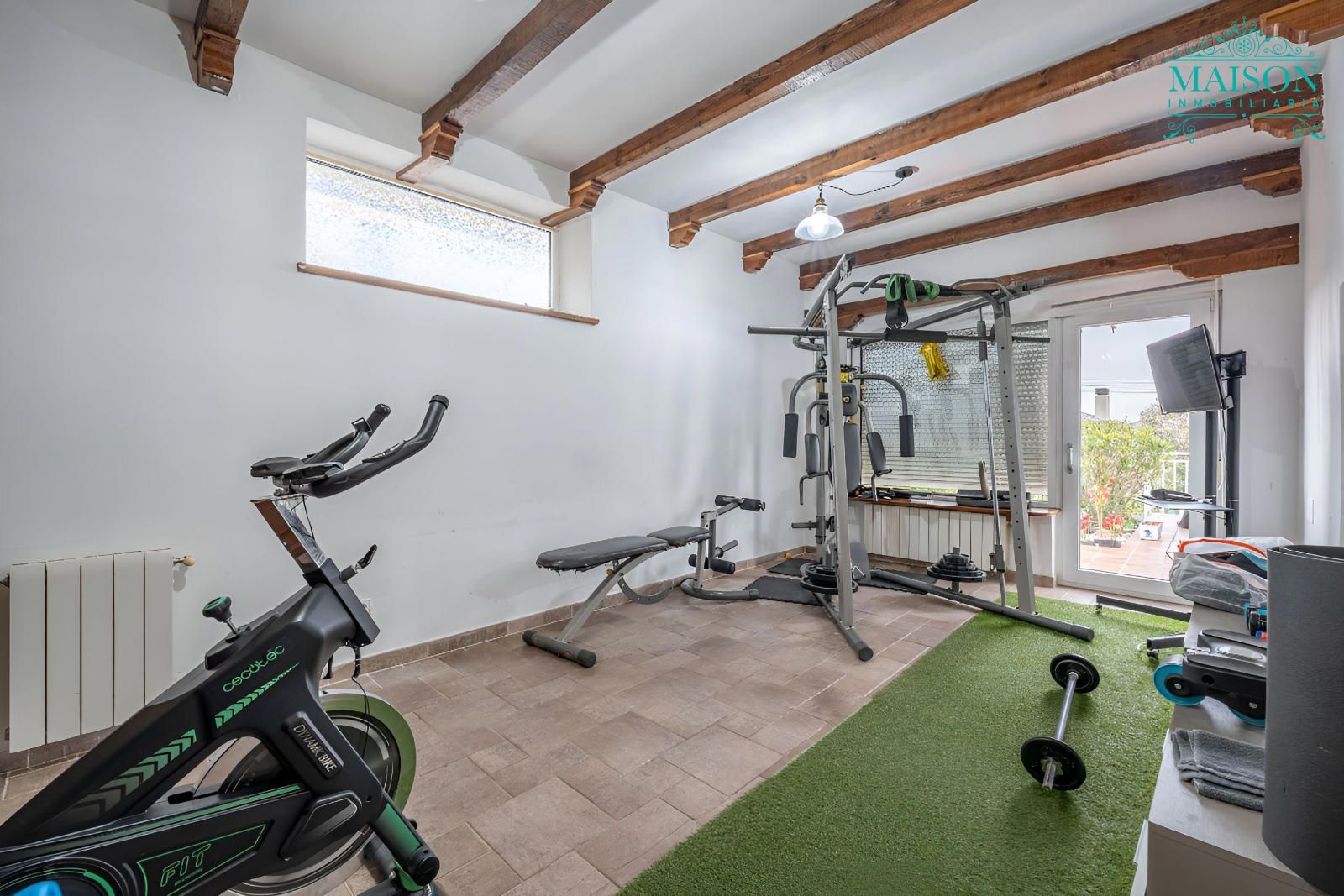 En la planta principal encontramos el salón con chimenea abierto a la cocina, que dispone de acceso al exterior, el comedor, un baño y una estancia actualmente como gimnasio, también con salida al exterior.