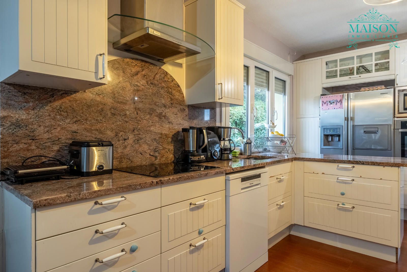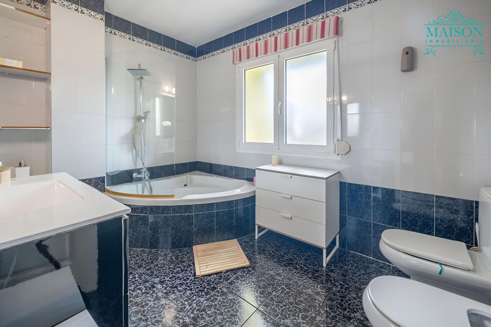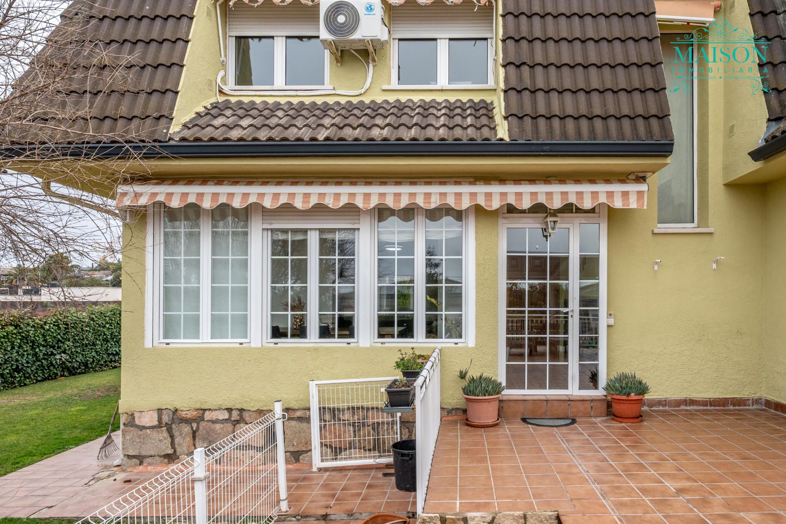 Este chalet independiente tiene chimenea, aire acondicionado, armarios empotrados, puertas de madera lacadas en blanco, ventanas climalit oscilobatientes, suelos de tarima y gres, calefacción mediante propano, etc.