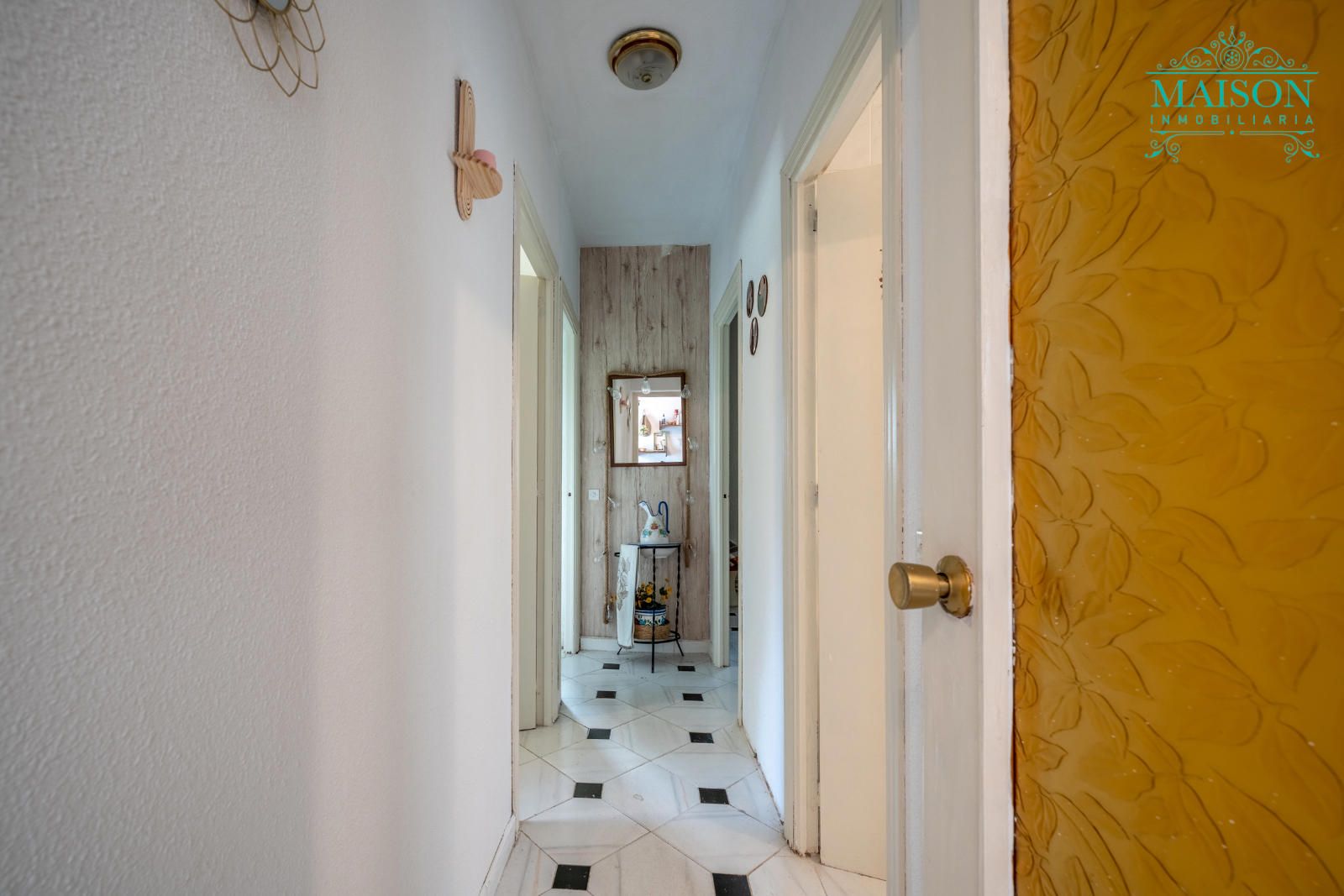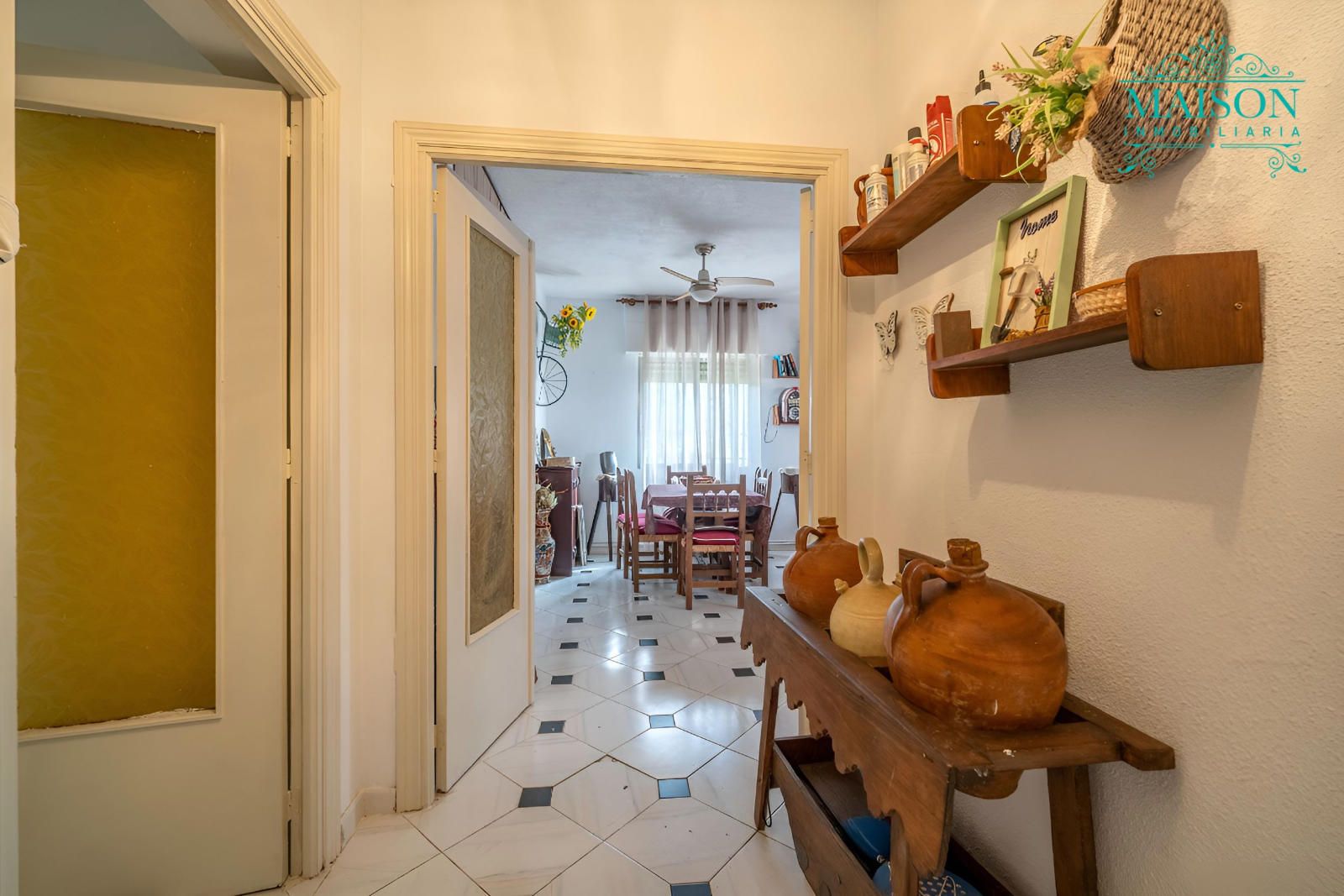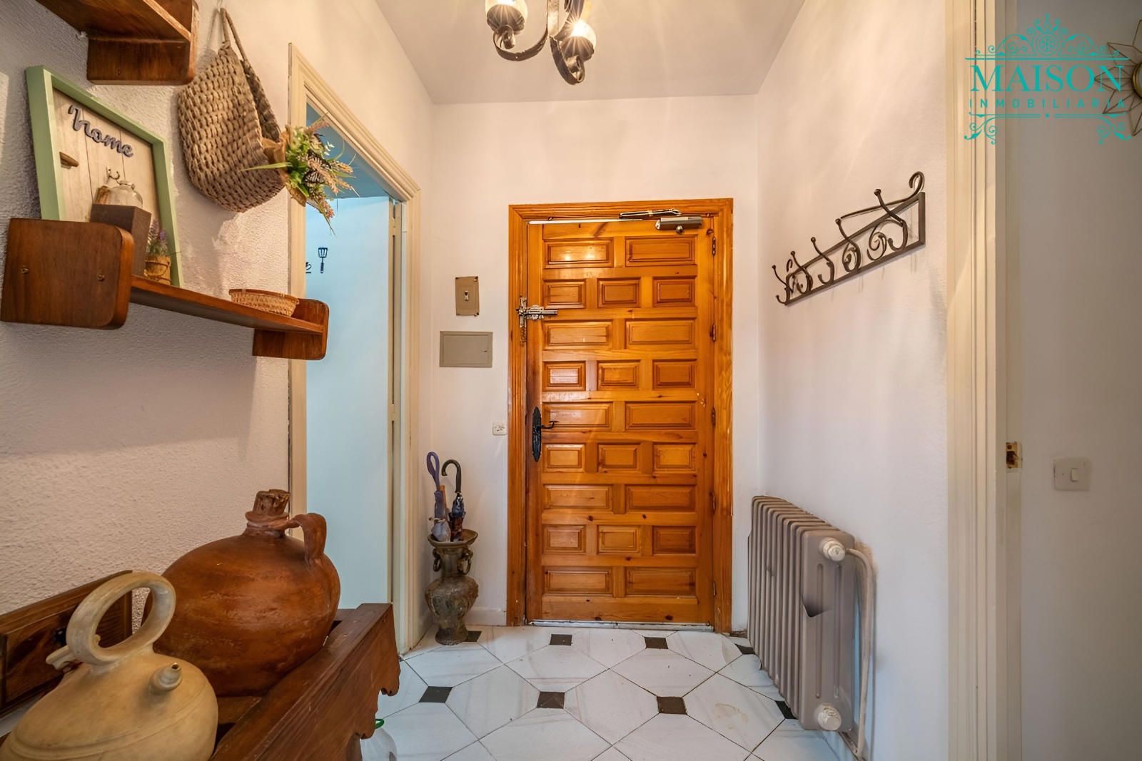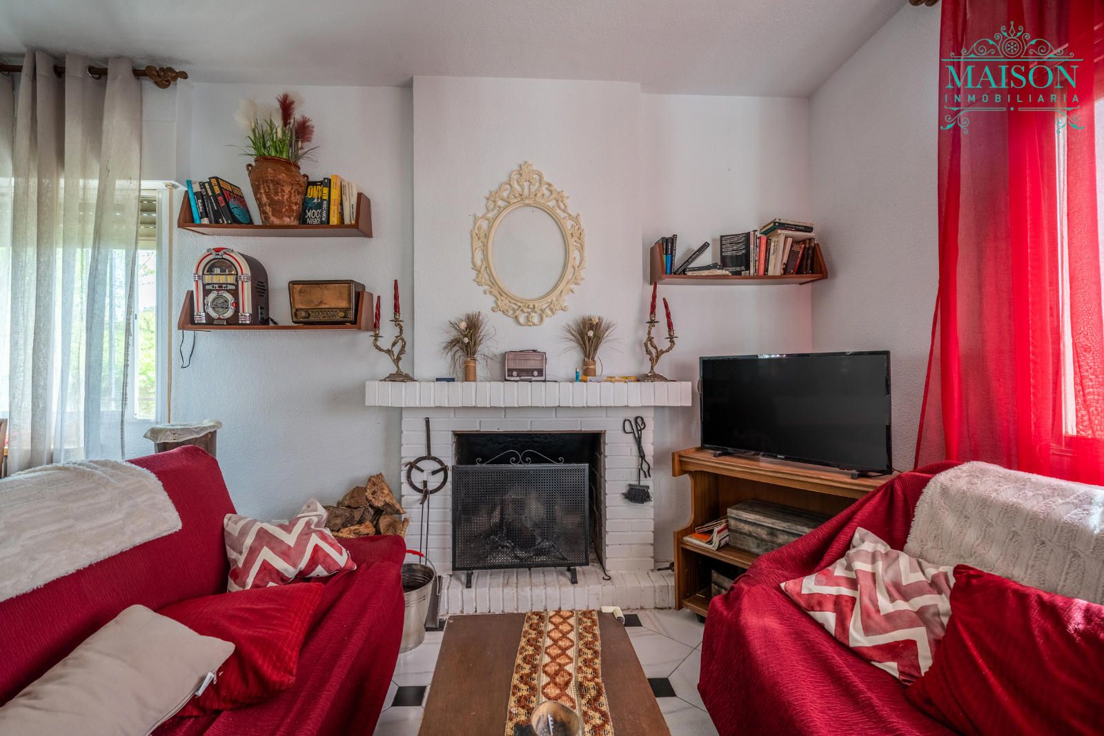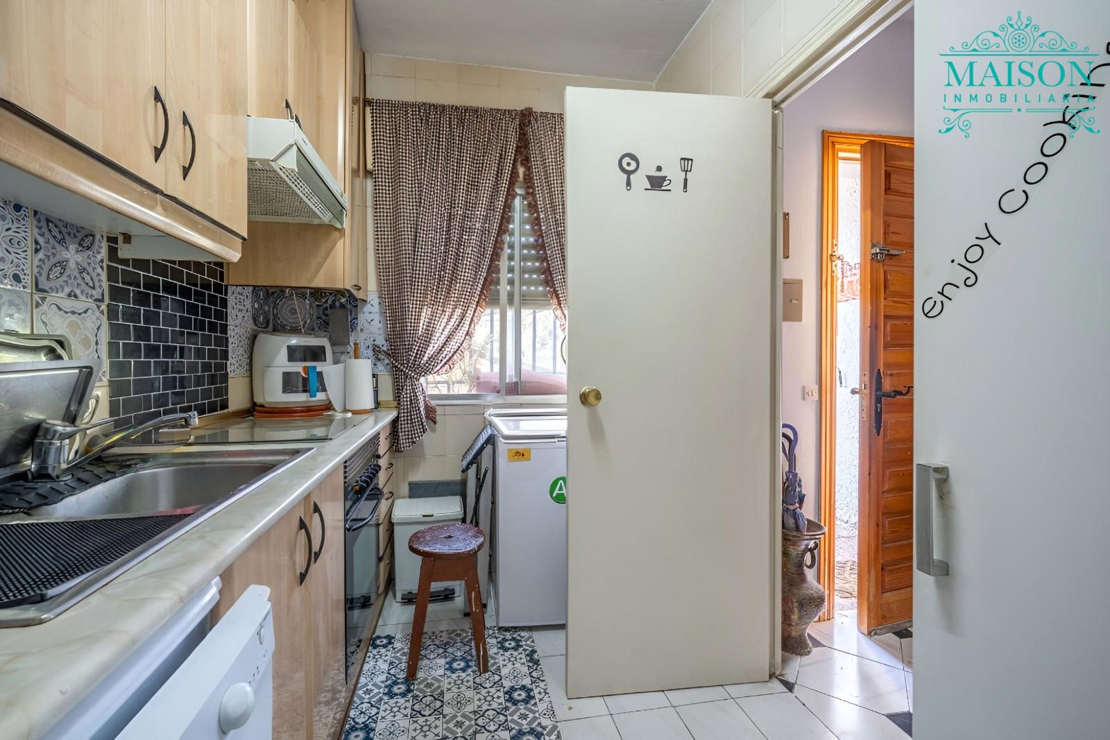 Accedemos a la única planta principal mediante la terraza y encontramos la cocina, el salón con chimenea, el cual tiene acceso al exterior, tres dormitorios y un baño completo.