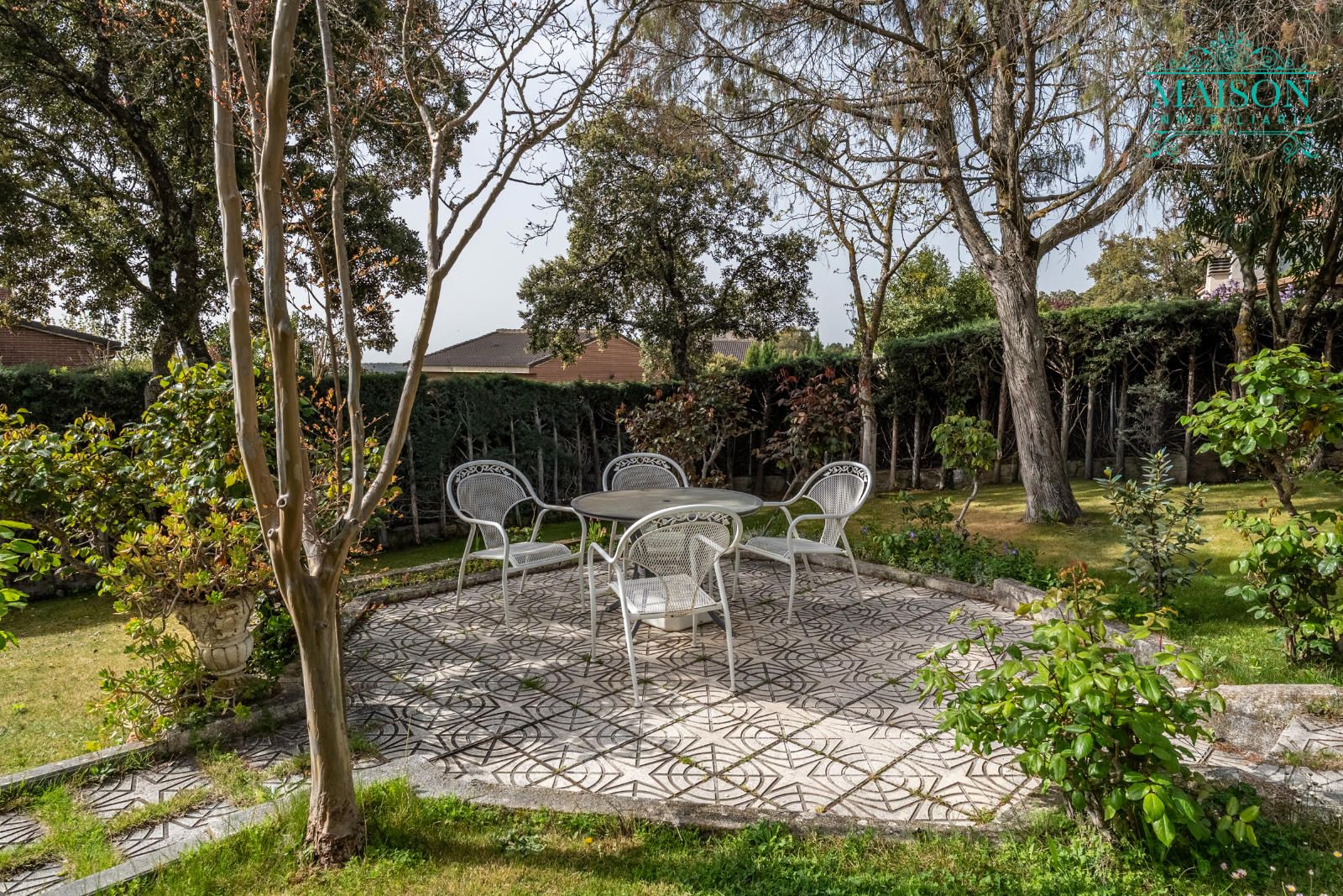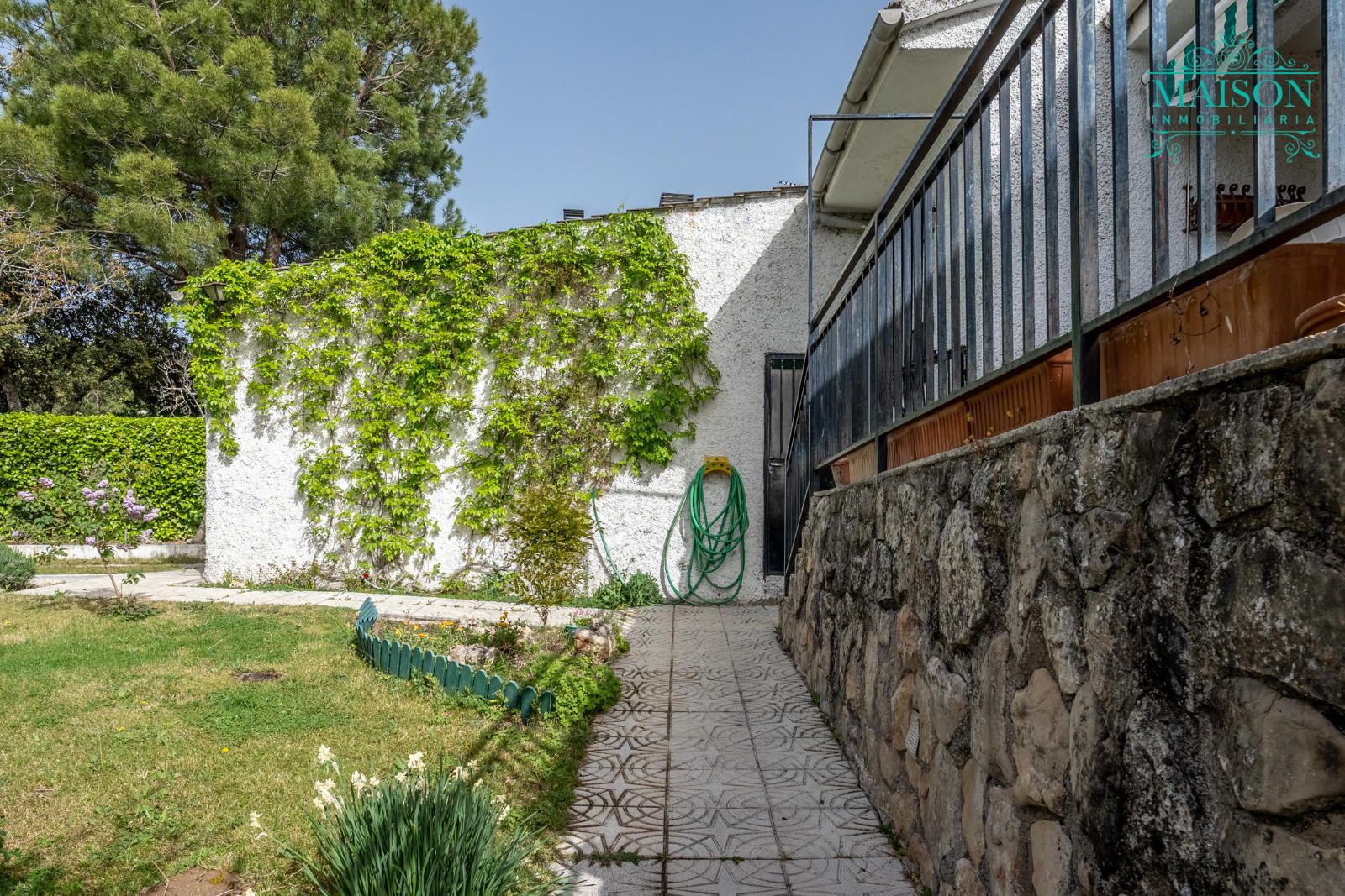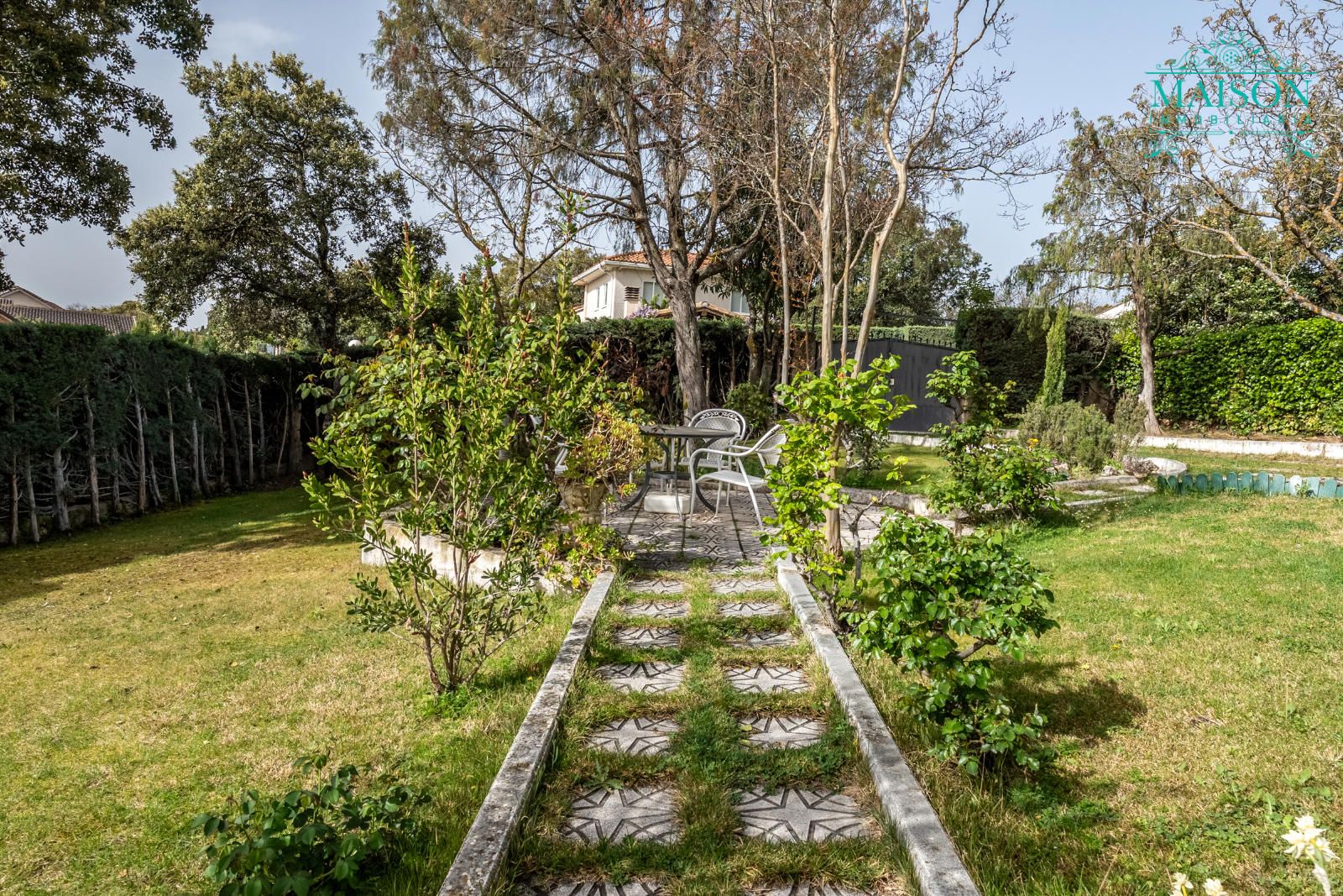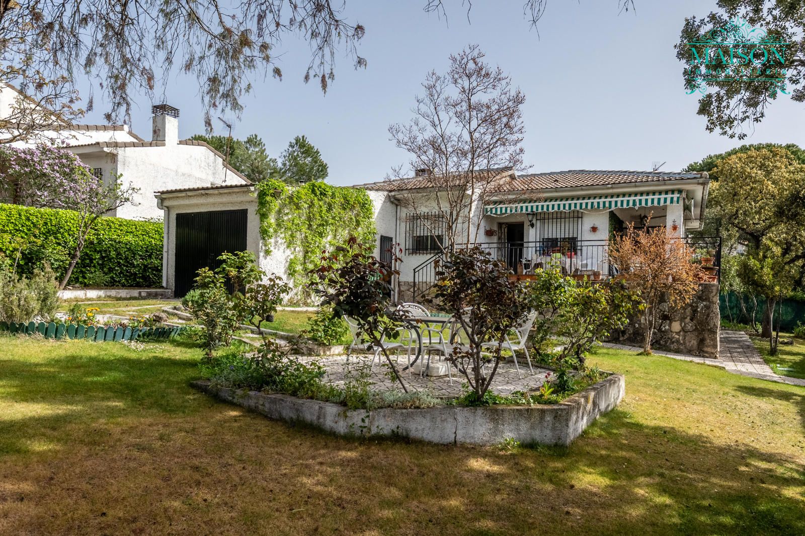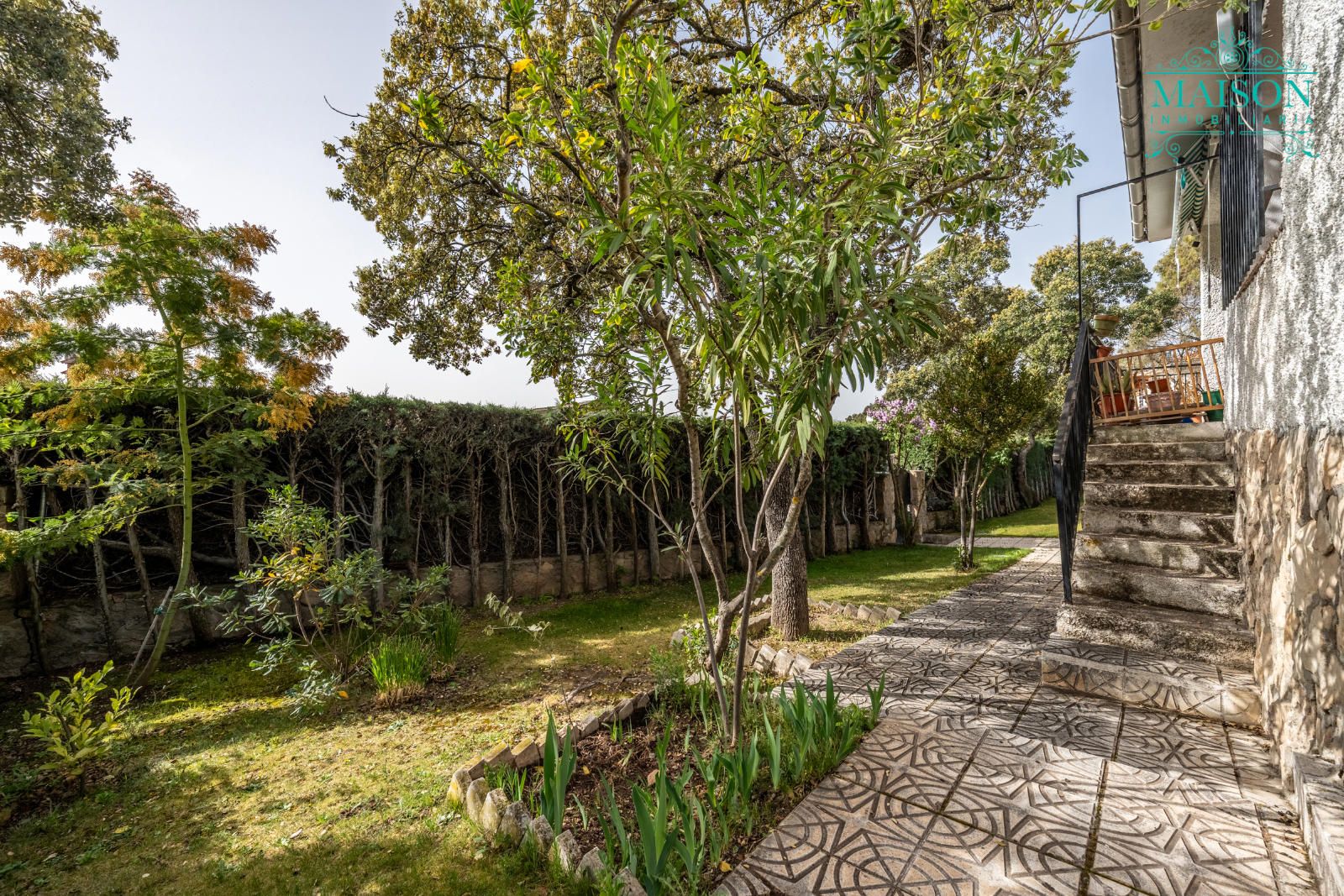 Además, cuenta con una parcela de 600m2, acondicionada con zonas ajardinadas y dispone de un garaje de 17m2.
