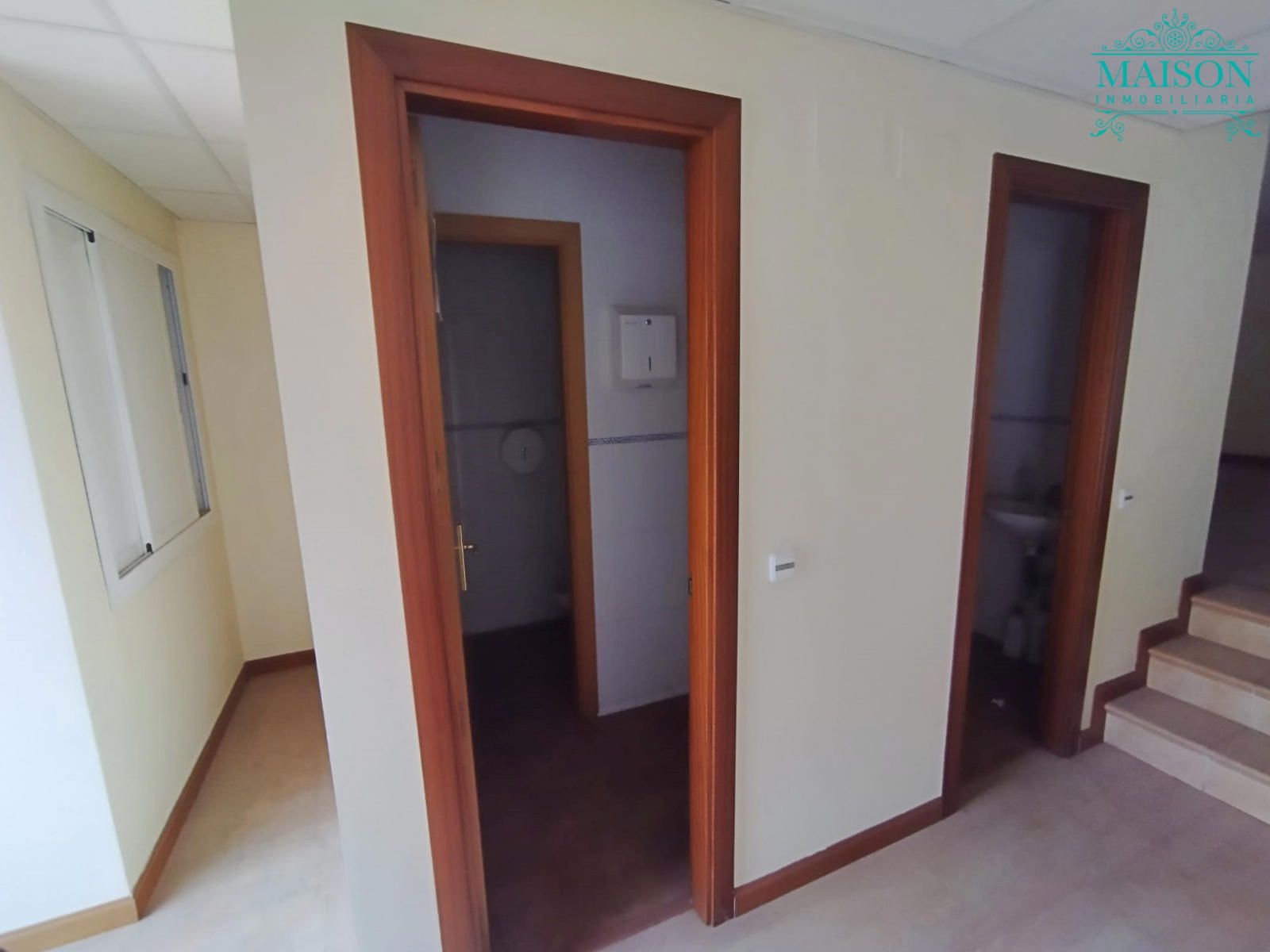 En la planta principal ubicamos el local de 108m2, a pie de calle con cristaleras y rejas automáticas. Accedemos a la entreplanta por unas escaleras donde hay dos aseos, uno de caballeros y otro de señora, además de una sala.