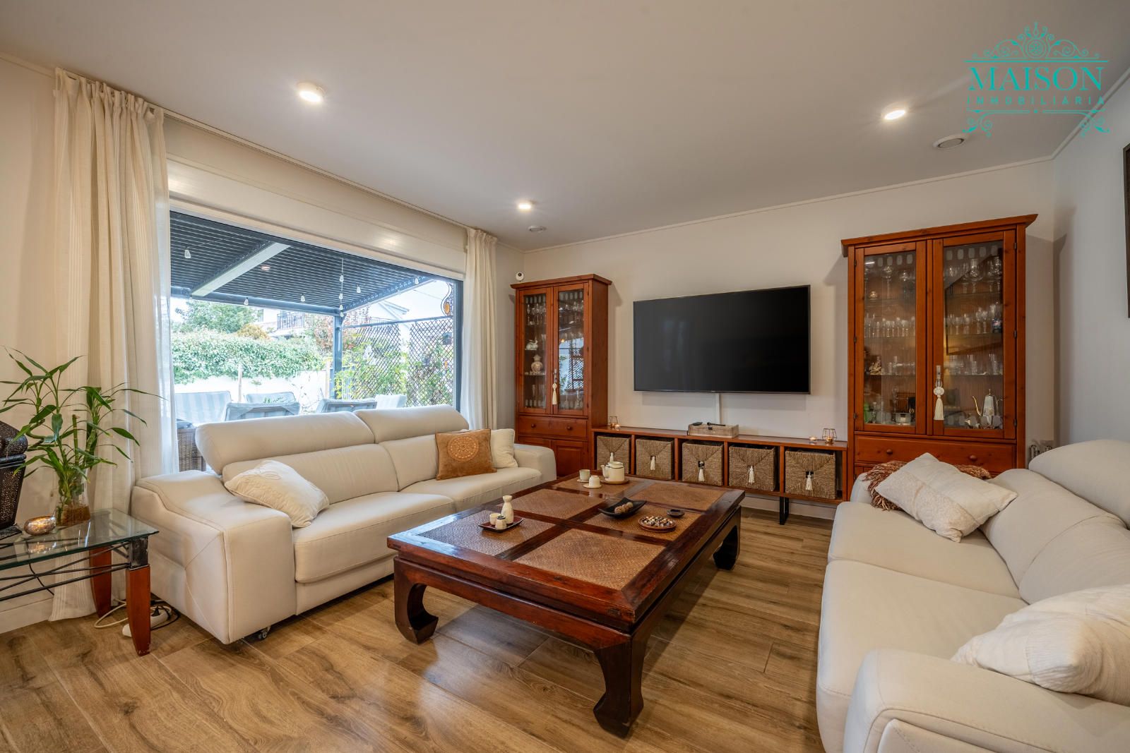 Este chalet independiente tiene armarios empotrados, placas solares, calefacción mediante aerotermia, puerta entrada con aislante acústico y térmico con anclajes, puertas de madera blancas, suelo radiante, que además de tener la calefacción tiene suelo refrescante para el verano, ventanas PVC oscilobatientes climalit de doble cámara, mosquiteras en todas las ventanas, pintura lisa, pérgola bioclimática, cocina de gas con instalación de electricidad para vitro o inducción, etc.