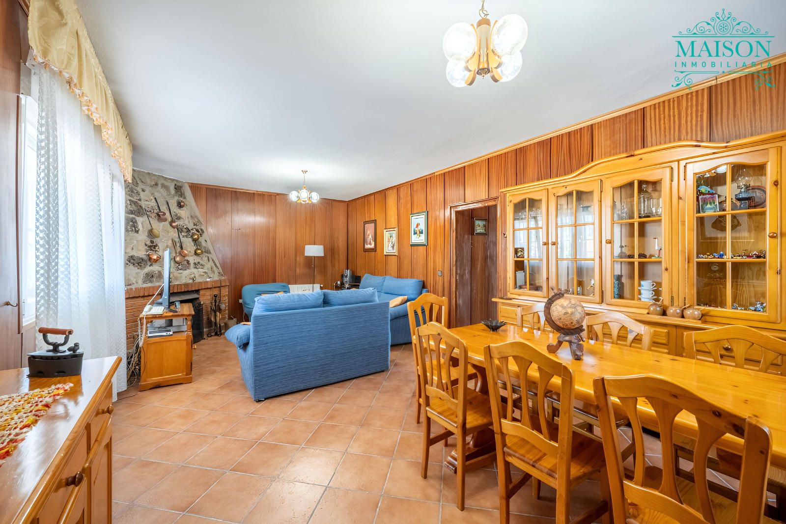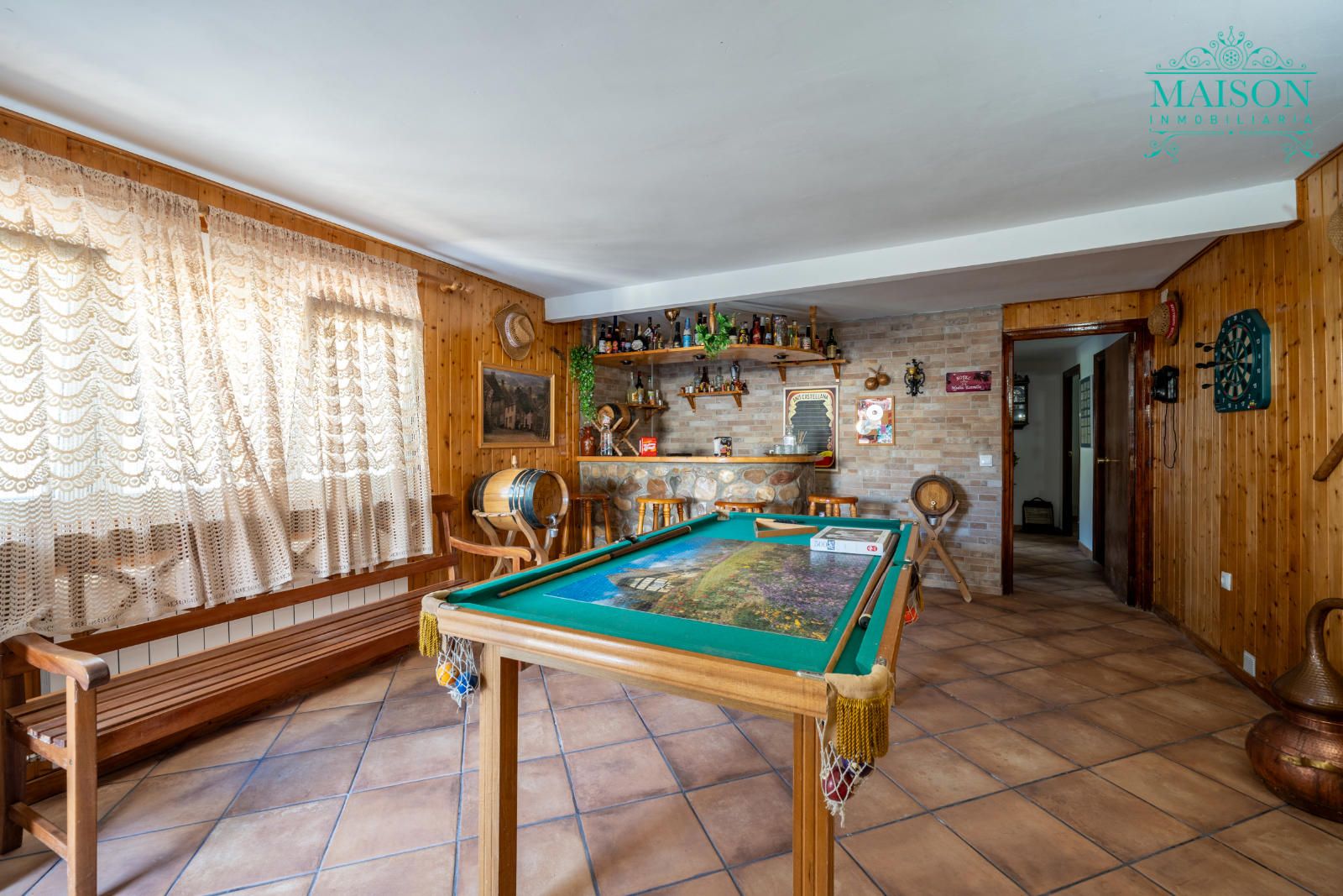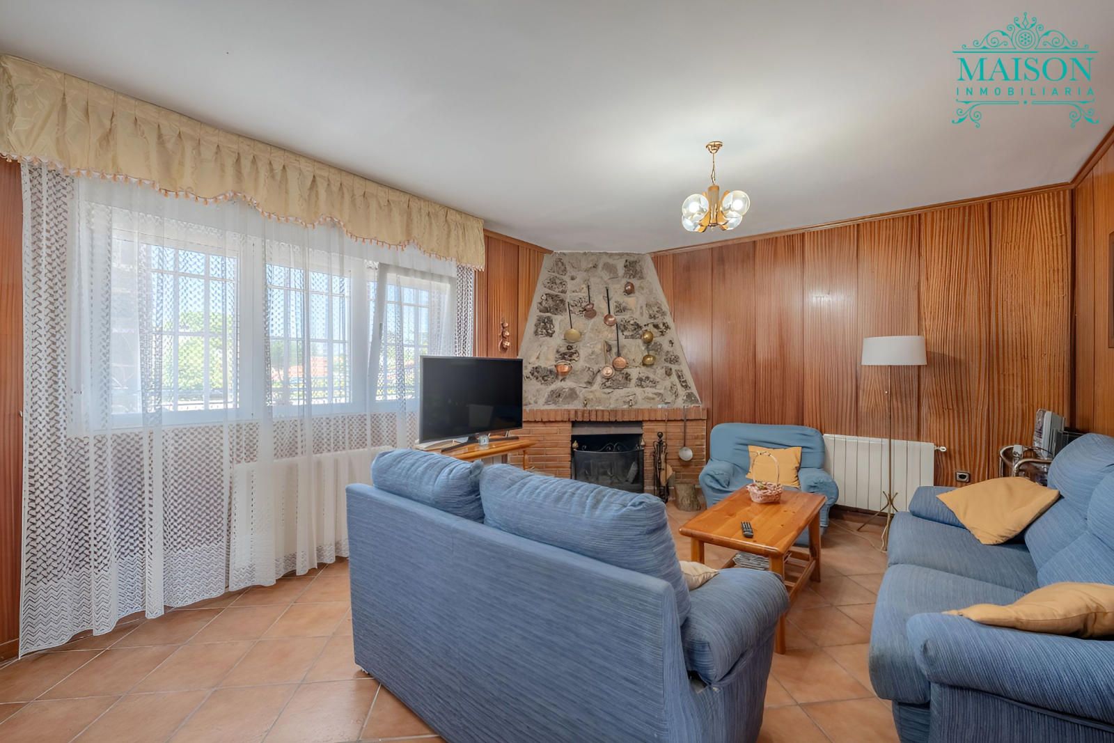 Este chalet independiente tiene armarios empotrados, chimenea, pintura lisa y el salón, pasillo, un dormitorio y la bodega están forrados de madera. Tiene también ventanas de aluminio oscilobatientes, suelos de tarima y gres, rejas, calefacción mediante gasoil, etc.