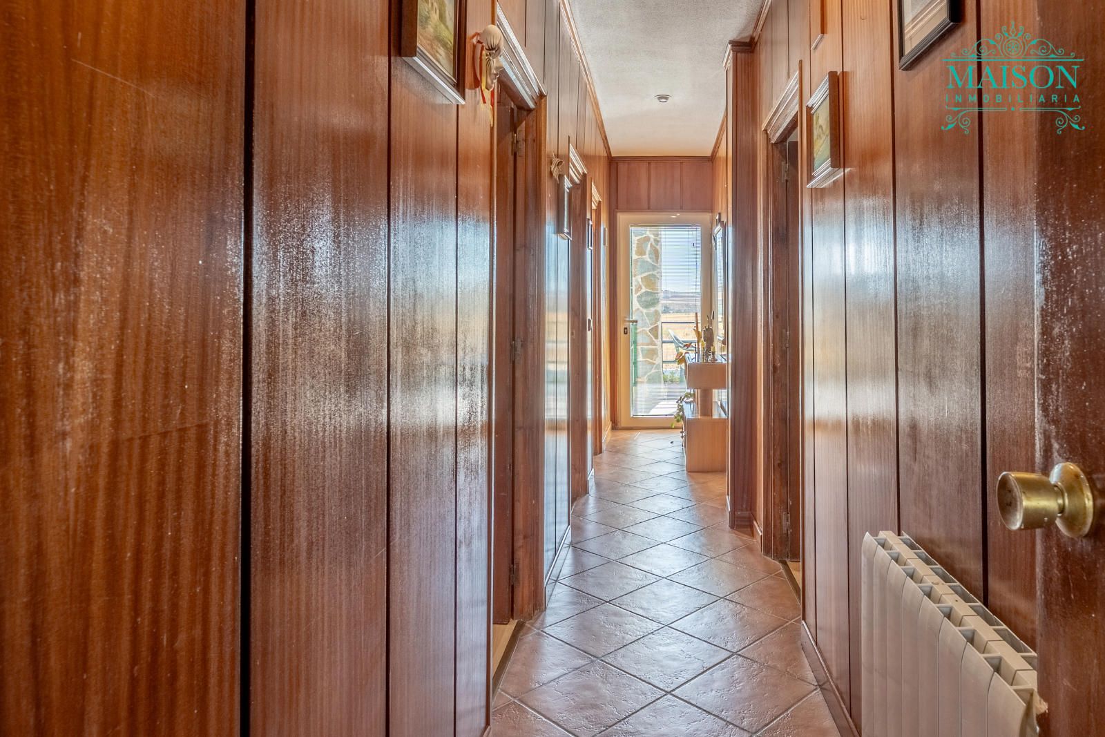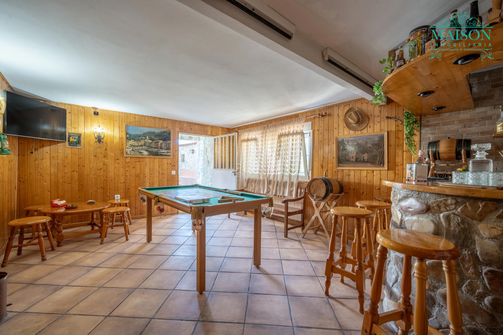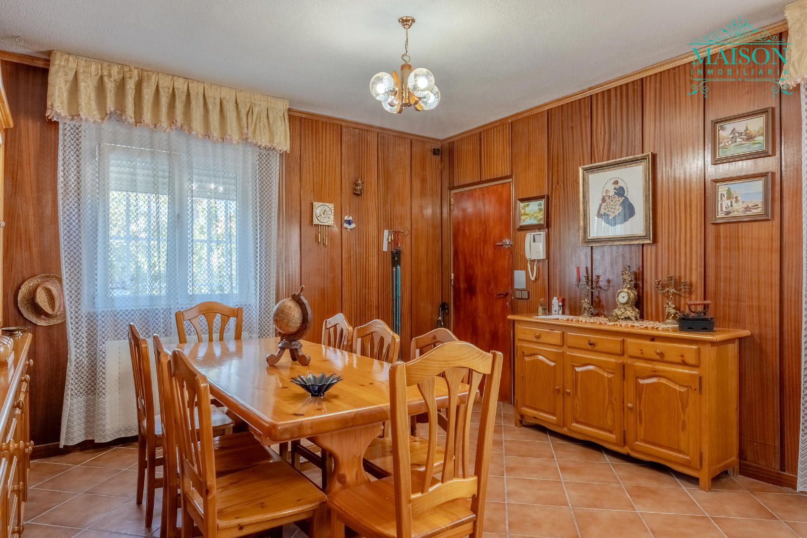 Este chalet independiente tiene armarios empotrados, chimenea, pintura lisa y el salón, pasillo, un dormitorio y la bodega están forrados de madera. Tiene también ventanas de aluminio oscilobatientes, suelos de tarima y gres, rejas, calefacción mediante gasoil, etc.