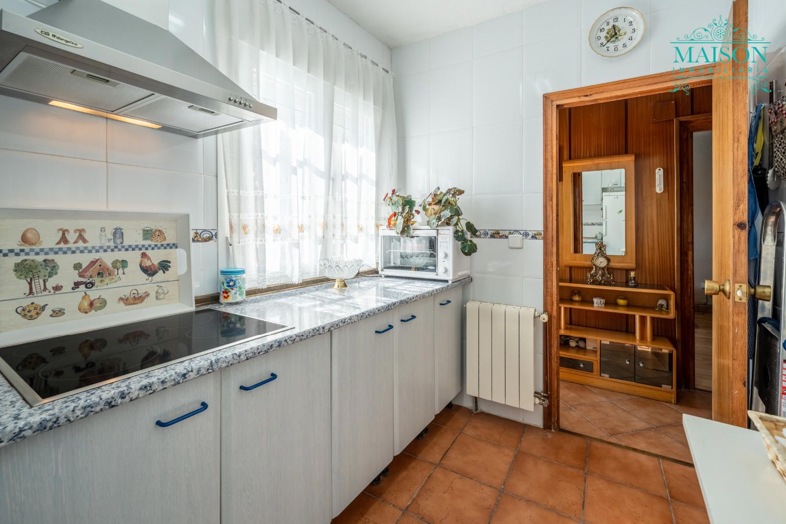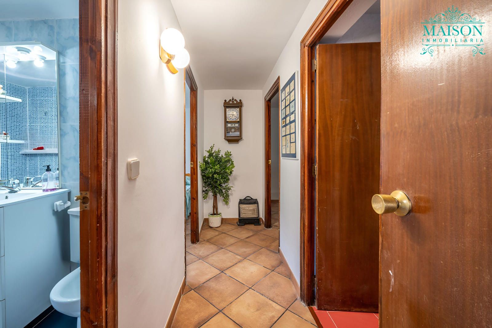 Accedemos a la planta principal mediante la terraza y encontramos el salón con chimenea, tres dormitorios, un baño completo y la cocina amueblada. Cuenta también con otra terraza la cual da a la parte trasera.
