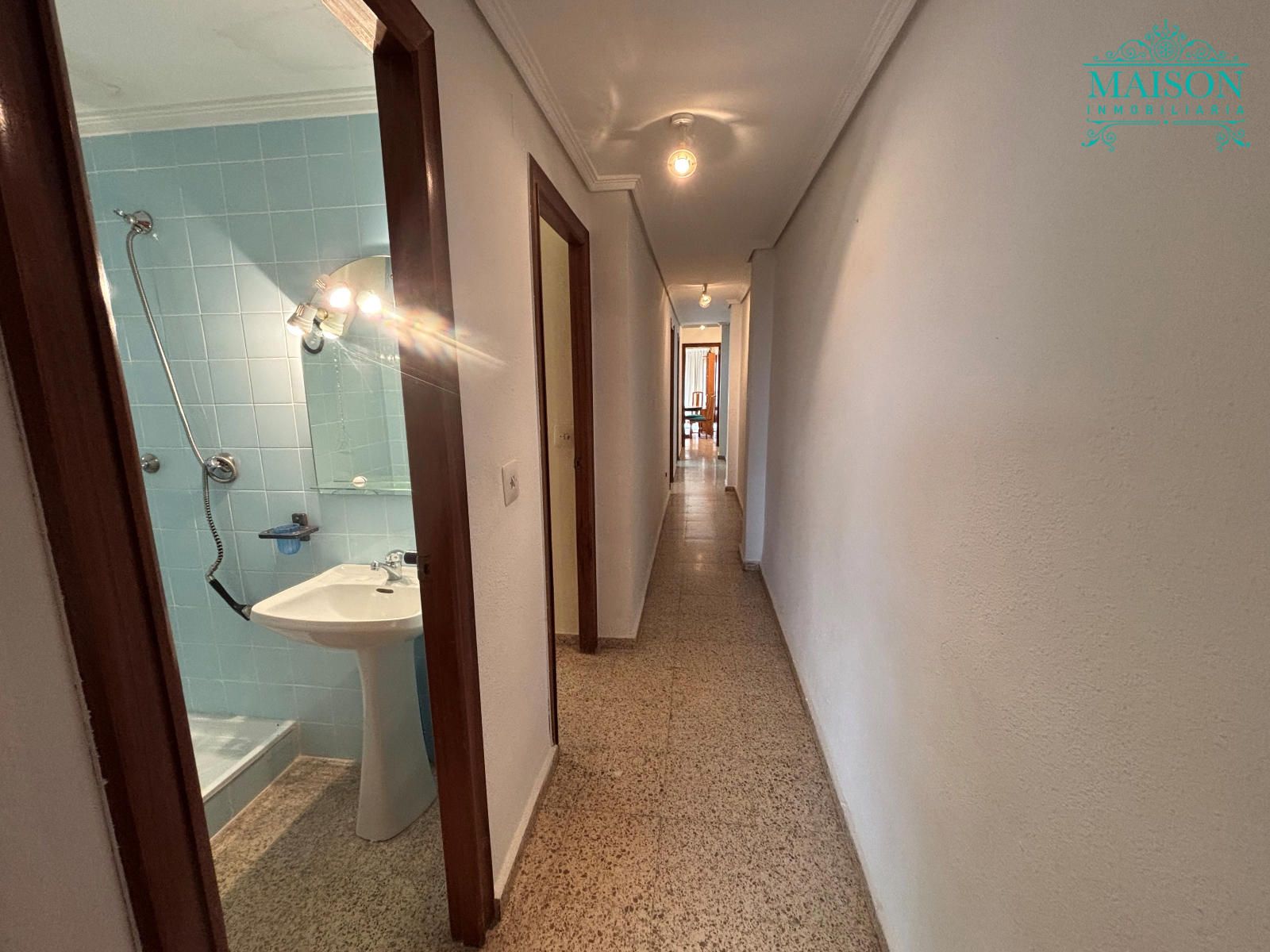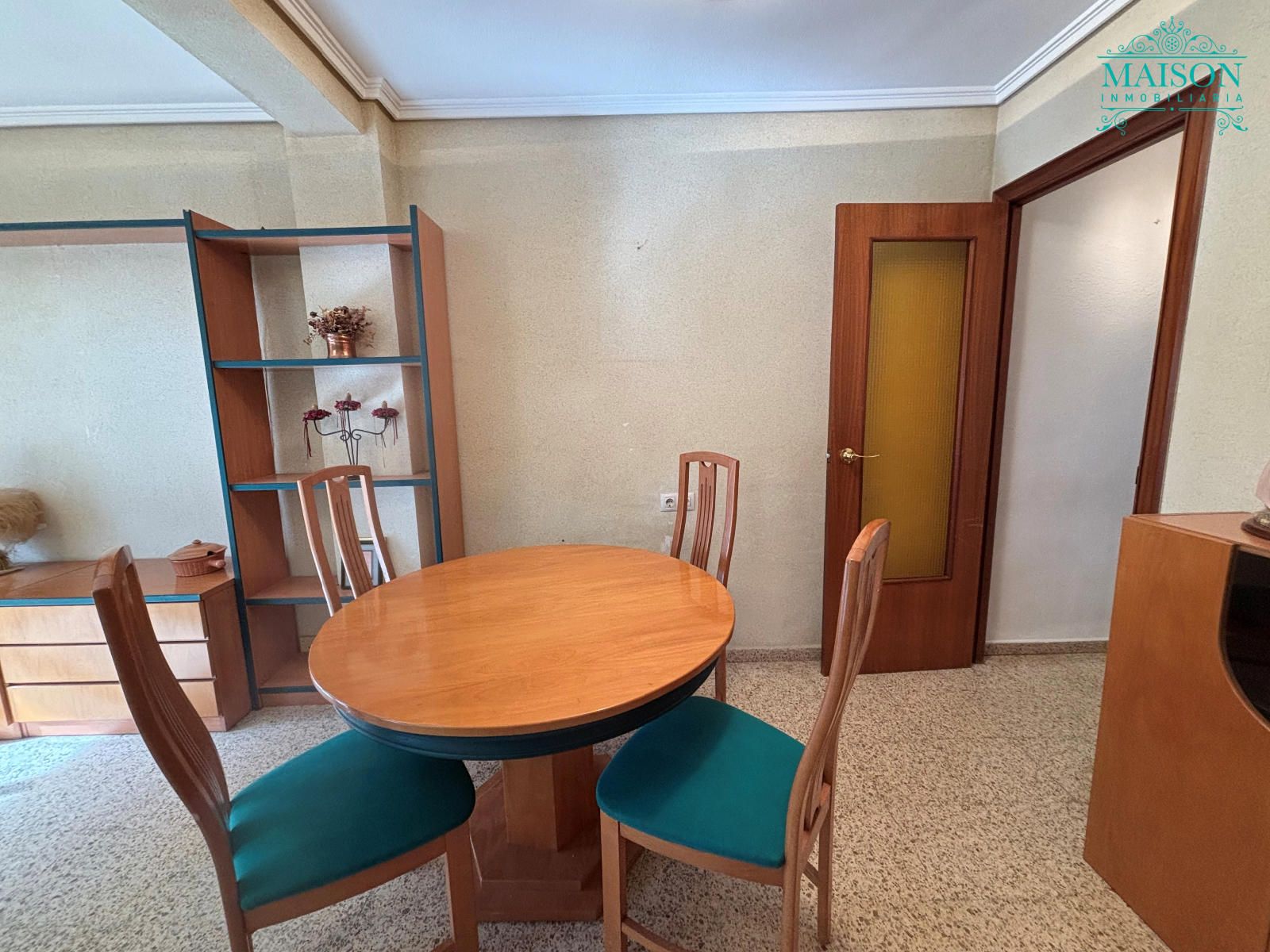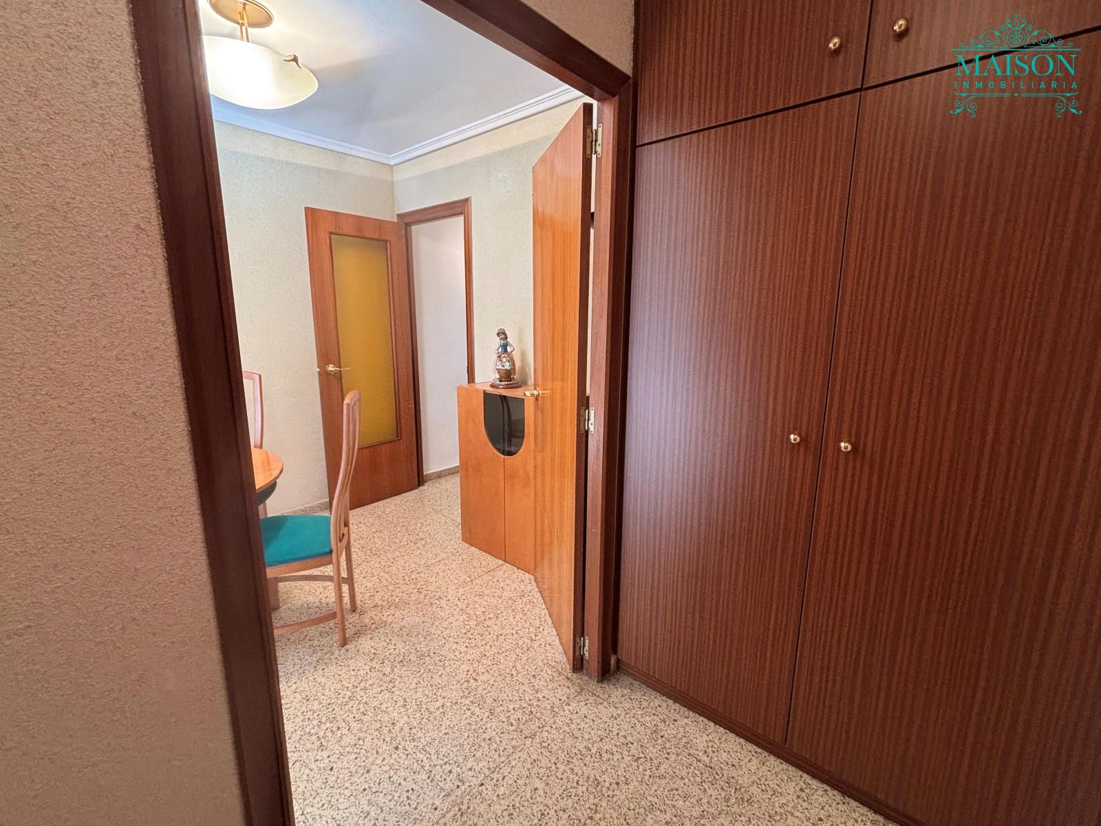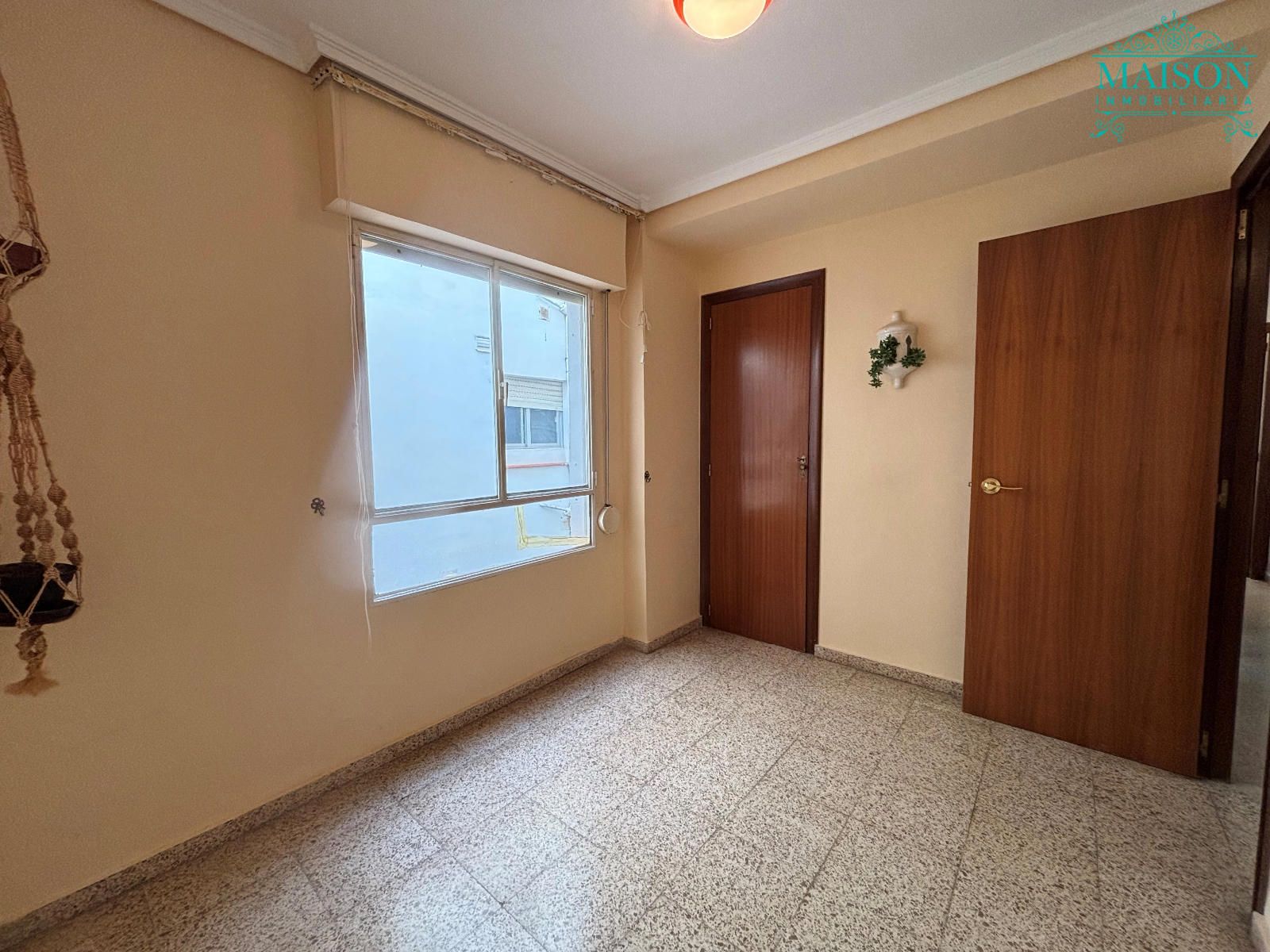 Este piso 2º tiene armarios empotrados, techos altos, puertas de madera, ventanas de aluminio climalit blanco, excepto en los dormitorios individuales donde son de hierro, suelos de terrazo, agua caliente a través de gas butano, pintura gotelé, etc….