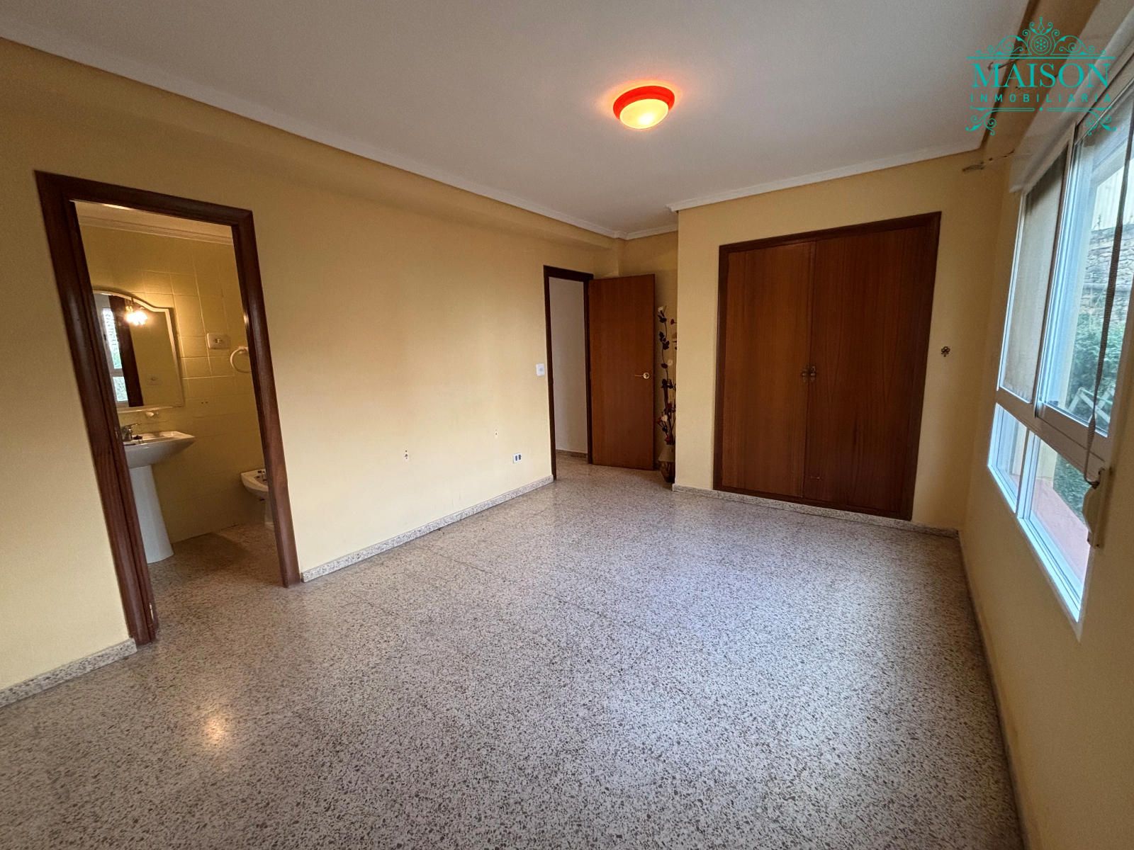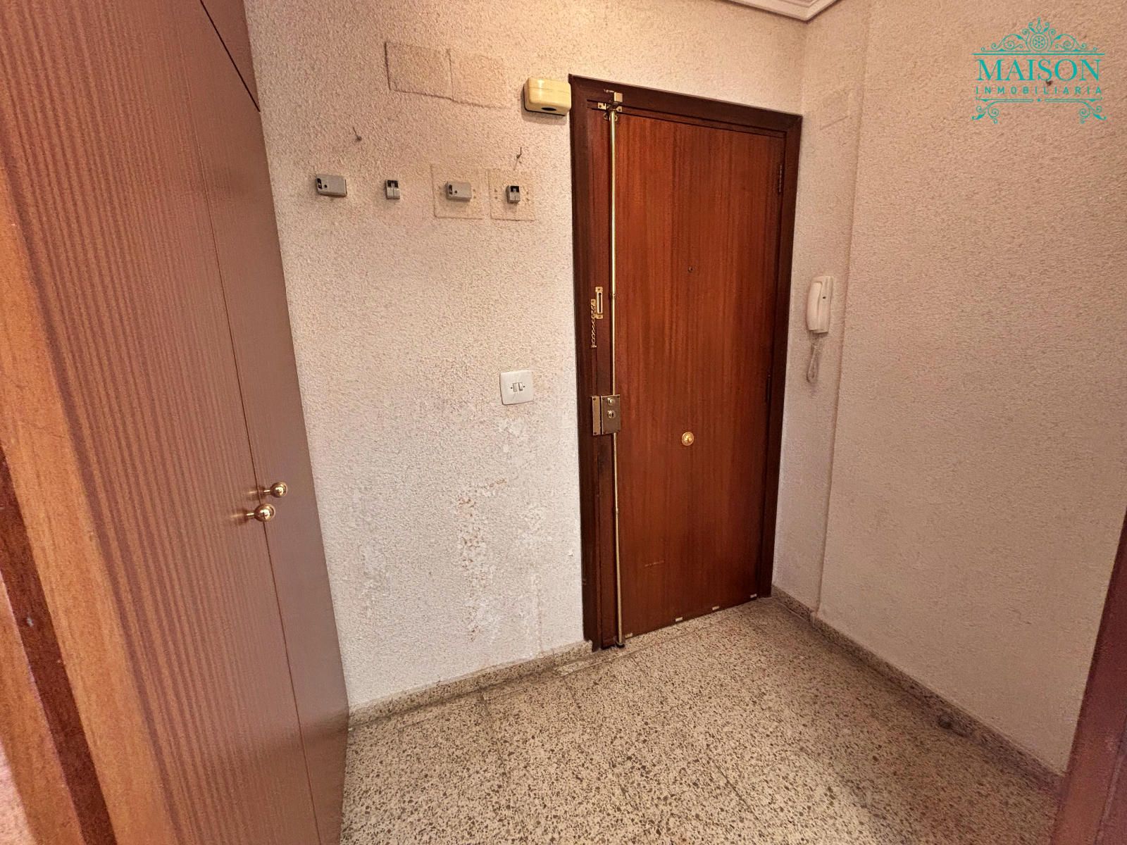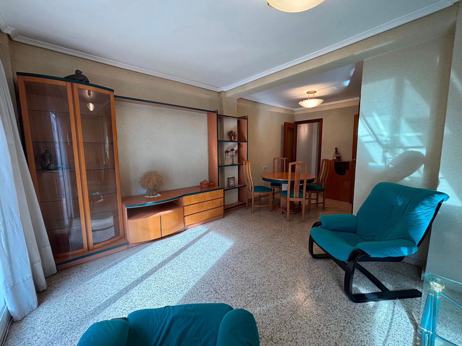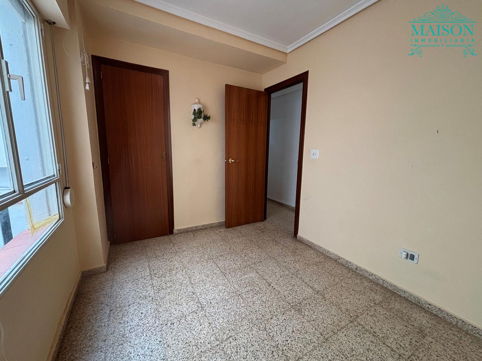 Este piso 2º tiene armarios empotrados, techos altos, puertas de madera, ventanas de aluminio climalit blanco, excepto en los dormitorios individuales donde son de hierro, suelos de terrazo, agua caliente a través de gas butano, pintura gotelé, etc….