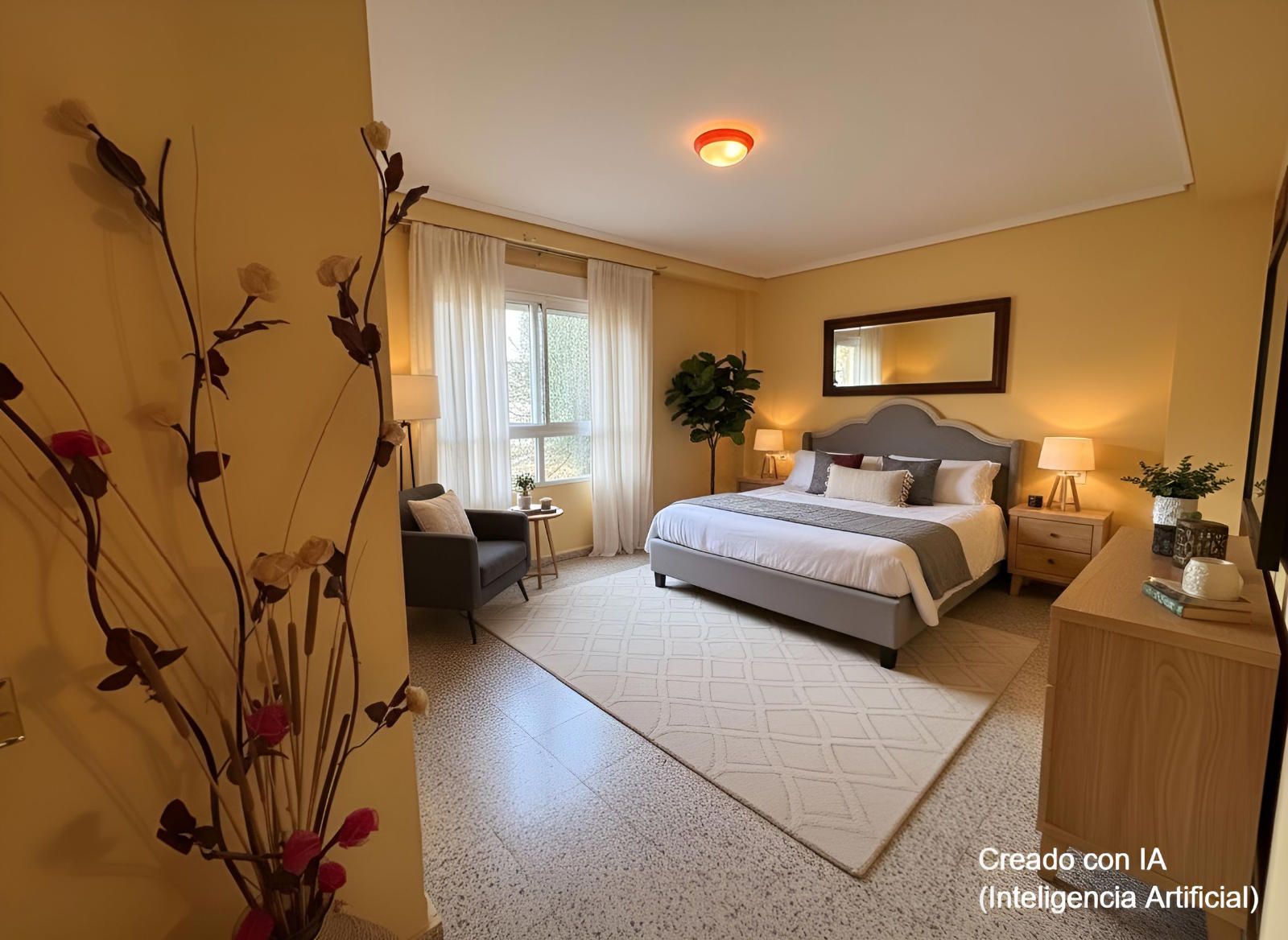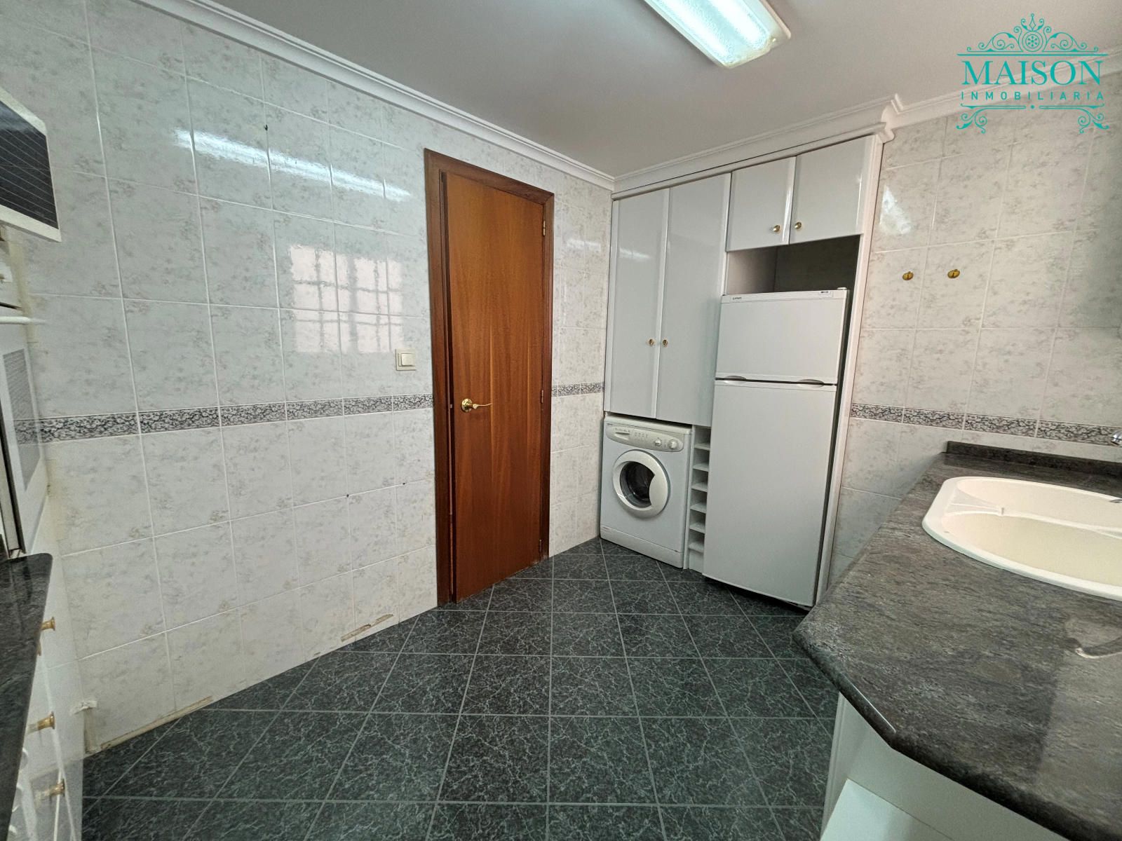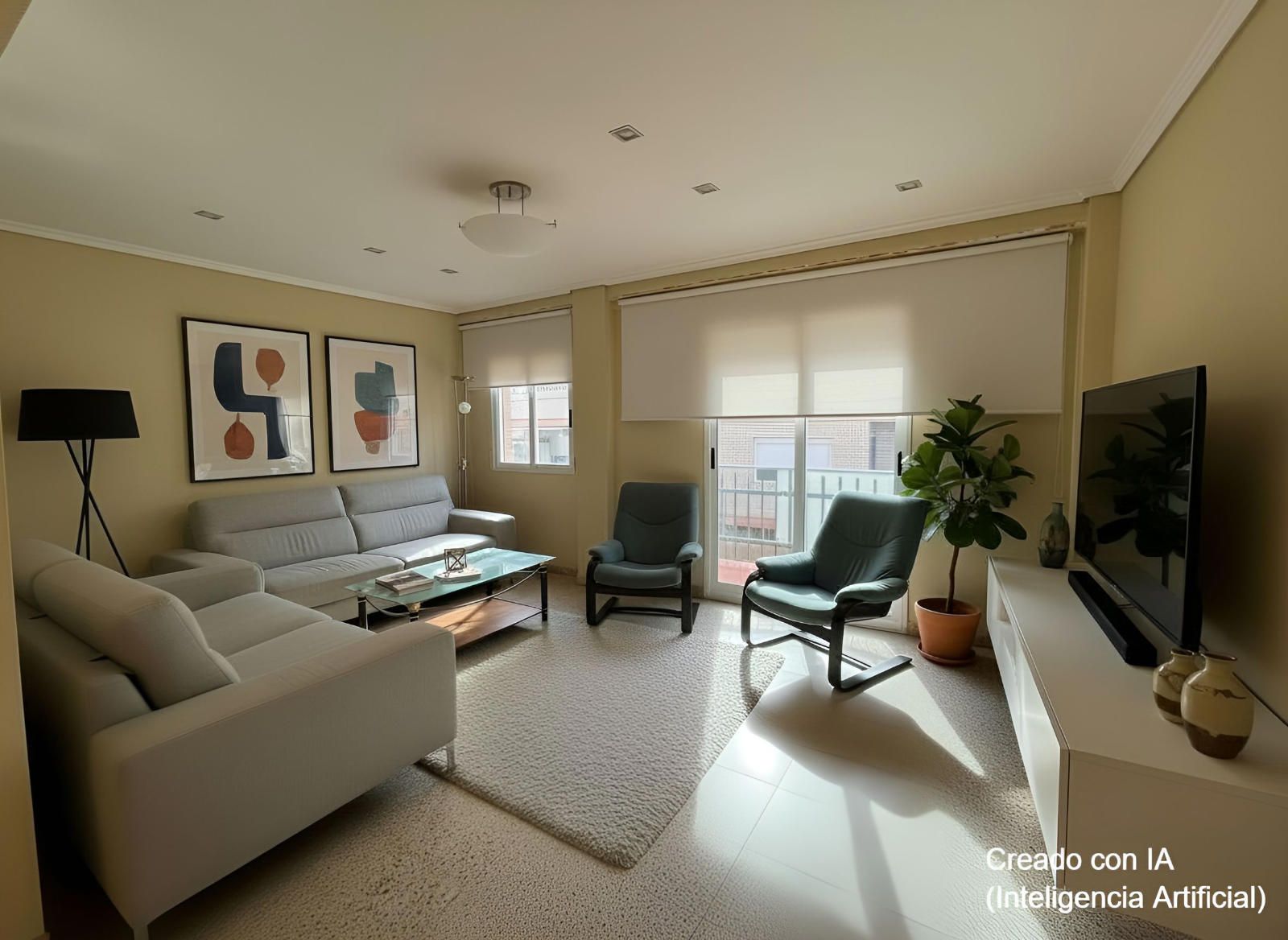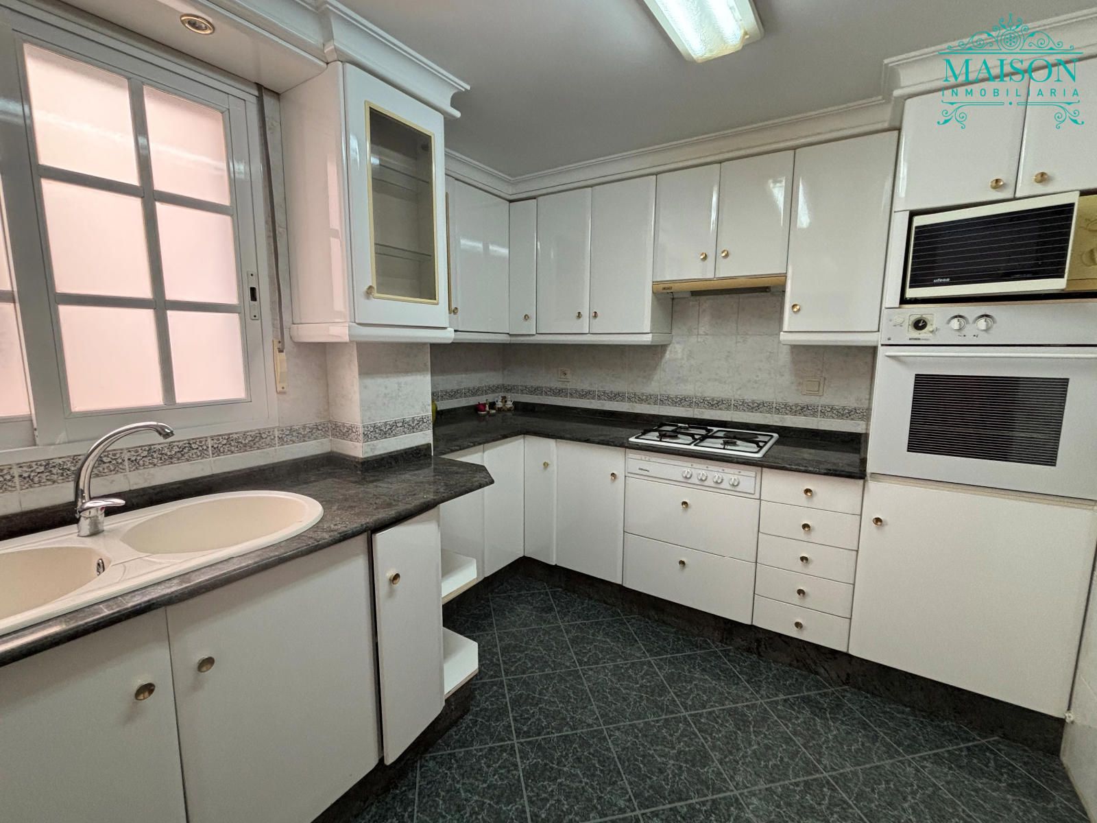 Este piso 2º tiene armarios empotrados, techos altos, puertas de madera, ventanas de aluminio climalit blanco, excepto en los dormitorios individuales donde son de hierro, suelos de terrazo, agua caliente a través de gas butano, pintura gotelé, etc….